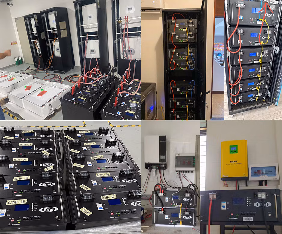 Los módulos de paquete de litio de EITAI se pueden instalar en paralelo con la caja combinadora para protección, con su comunicación BMS integrada